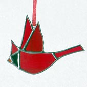 Red Cardinal made of stained glass. Looks great on the tree or hanging in your window! About 3 inches long.