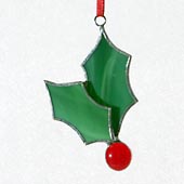 Holly leaf cluster with berries. Approximately 2-3/4 inches tall.